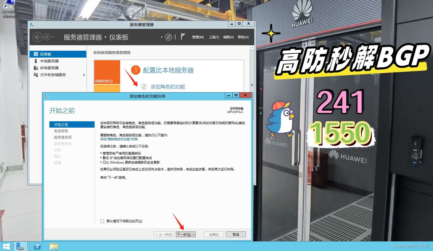 2、在仪表板里面点击【添加角色和功能】——【下一步】