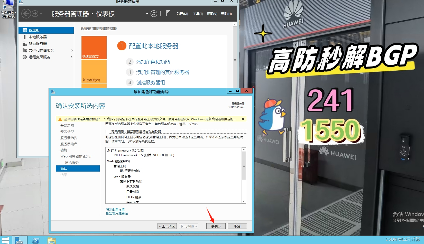 本文详细描述了如何通过远程连接一步步在Windows服务器上安装Web服务器(IIS)以及.NETFramework3.5的功能,包括添加角色服务和创建桌面快捷方式的过程。