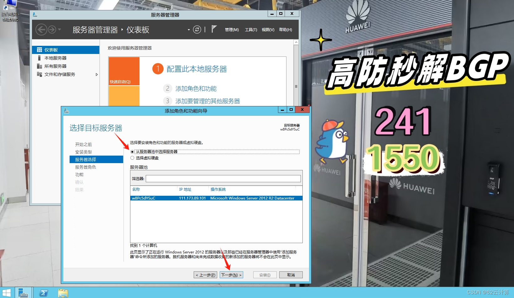 4、选择【从服务器池中选择服务器】——点击【下一步】