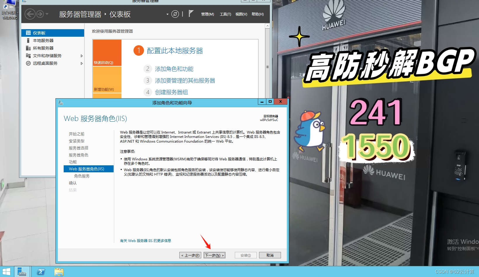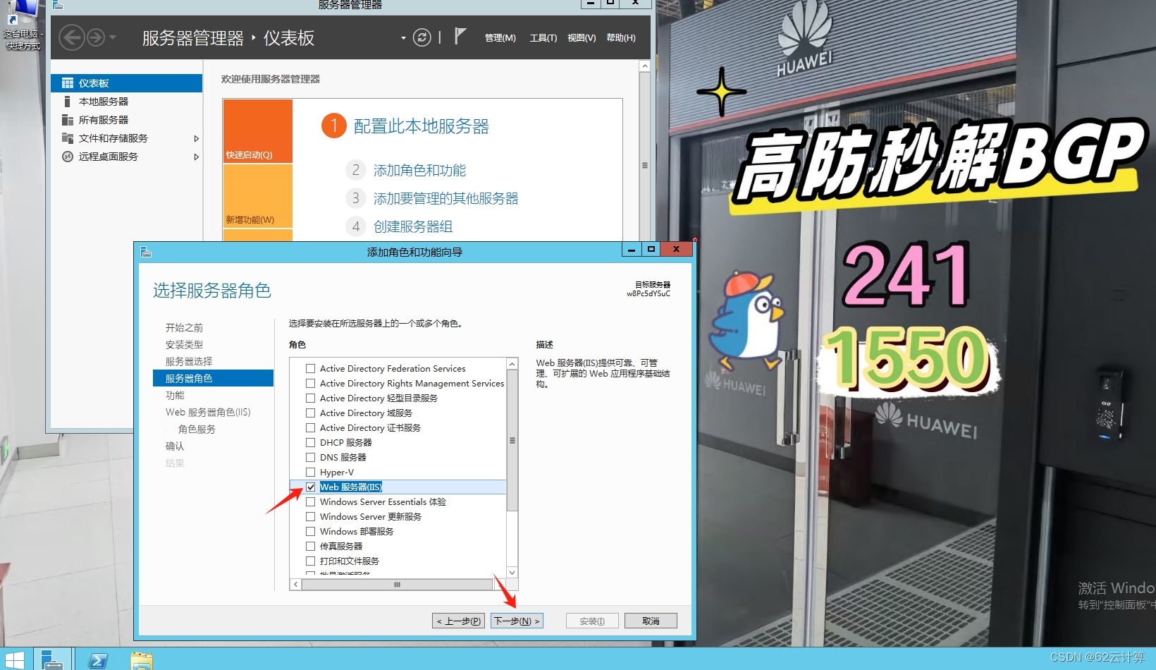 5、选择【Web 服务器(IIS)】,弹窗选择【添加功能】——点击【下一步】