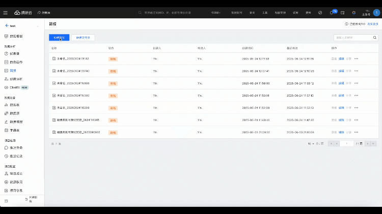 腾讯云BI是腾讯云大数据团队打造的一款专业BI分析工具,提供从数据源接入、数据建模到数据可视化分析全流程的BI能力,仅需简单拖拽即可完成复杂的报表开发,并支持报表分享、推送等企业协作场景。
