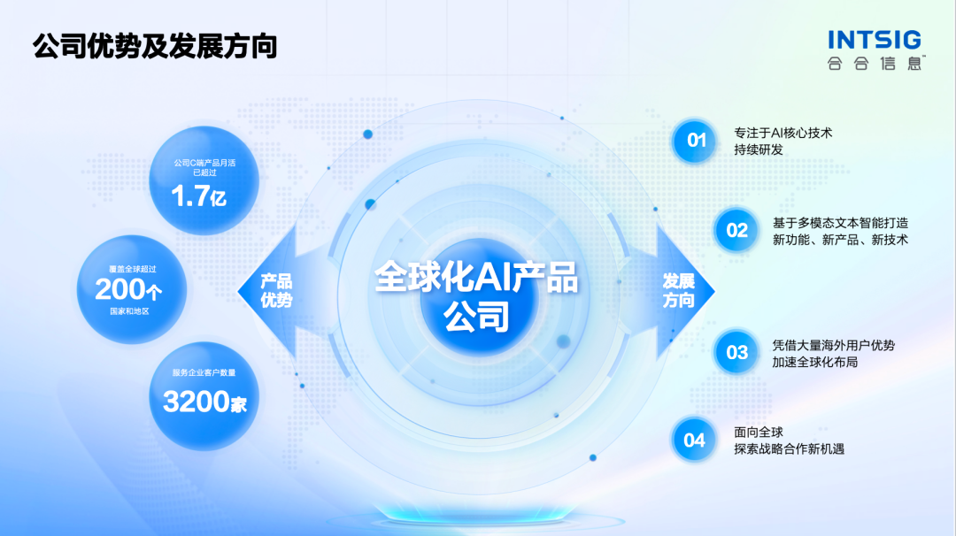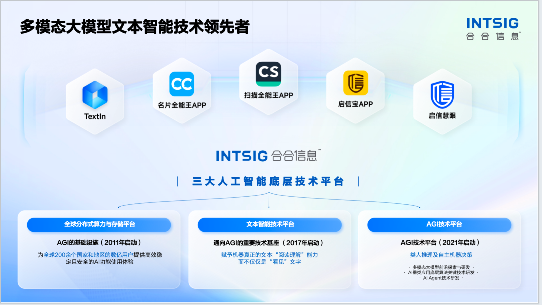 上海合合信息科技股份有限公司(简称:合合信息,股票代码:688615.SH)是一家中国领先的人工智能产品公司,始终致力以AI技术创新赋能,向全球C端用户和多元行业B端客户提供“真有用、真好用”的产品。已在上交所科创板上市。公司主要 C 端产品包括扫描全能王、名片全能王和启信宝。
