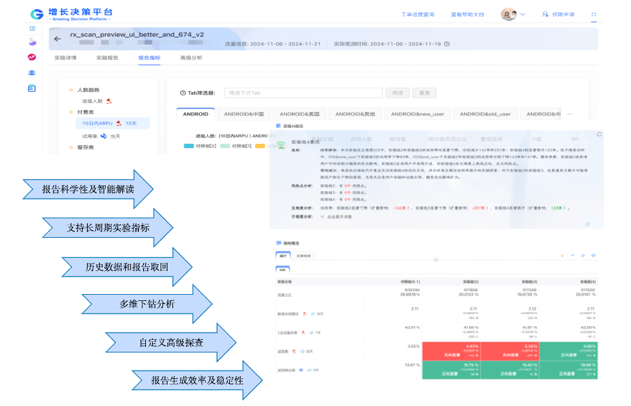 A/B 自动报告平台:要实现报告的自动化生成,减少人工操作成本;同时具备精准的流量预警能力,能及时发现流量异常,让业务人员快速响应,保障业务稳定并抓住潜在机会。
