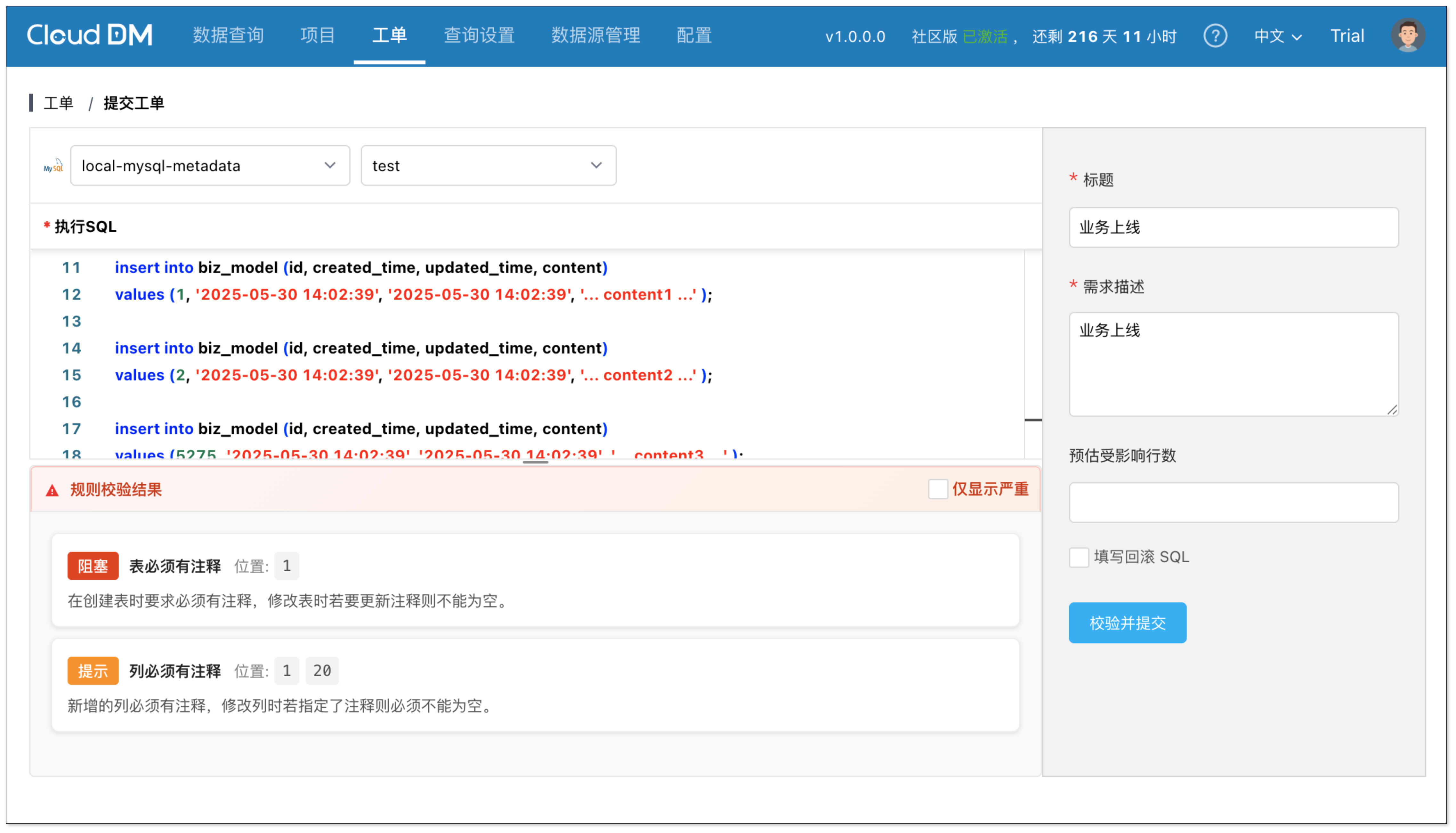 - 在工单中可以混合使用 DDL/DML,在变更发布需要初始化数据的时候会方便很多。