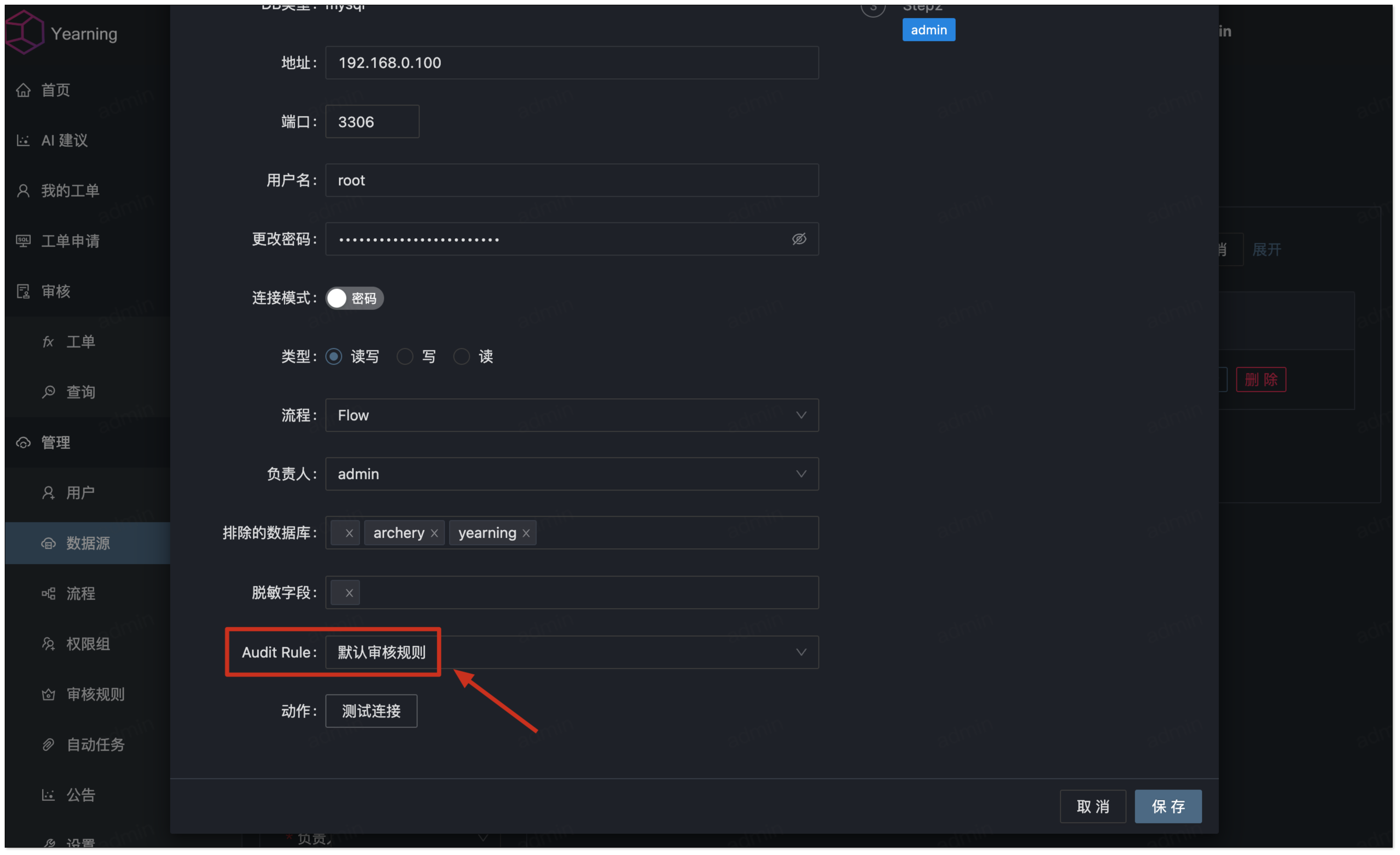 在 Yearning 中,SQL 规范是绑定在数据源上的,如果同一个环境中多个数据源想使用相同的规则,就需要为每个数据源进行单独设置。