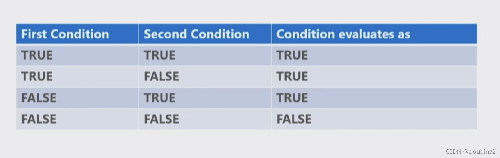 If multiple conditions cause the same action they can be combined into a single condition