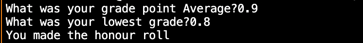 # A student makes honour roll if their average is >= 85