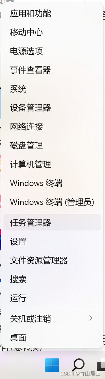 鼠标右键点开始按钮,在右键菜单上,点任务管理器。