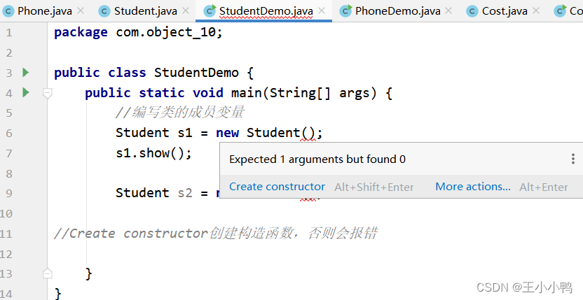 //Create constructor要求创建构造函数,否则会报错