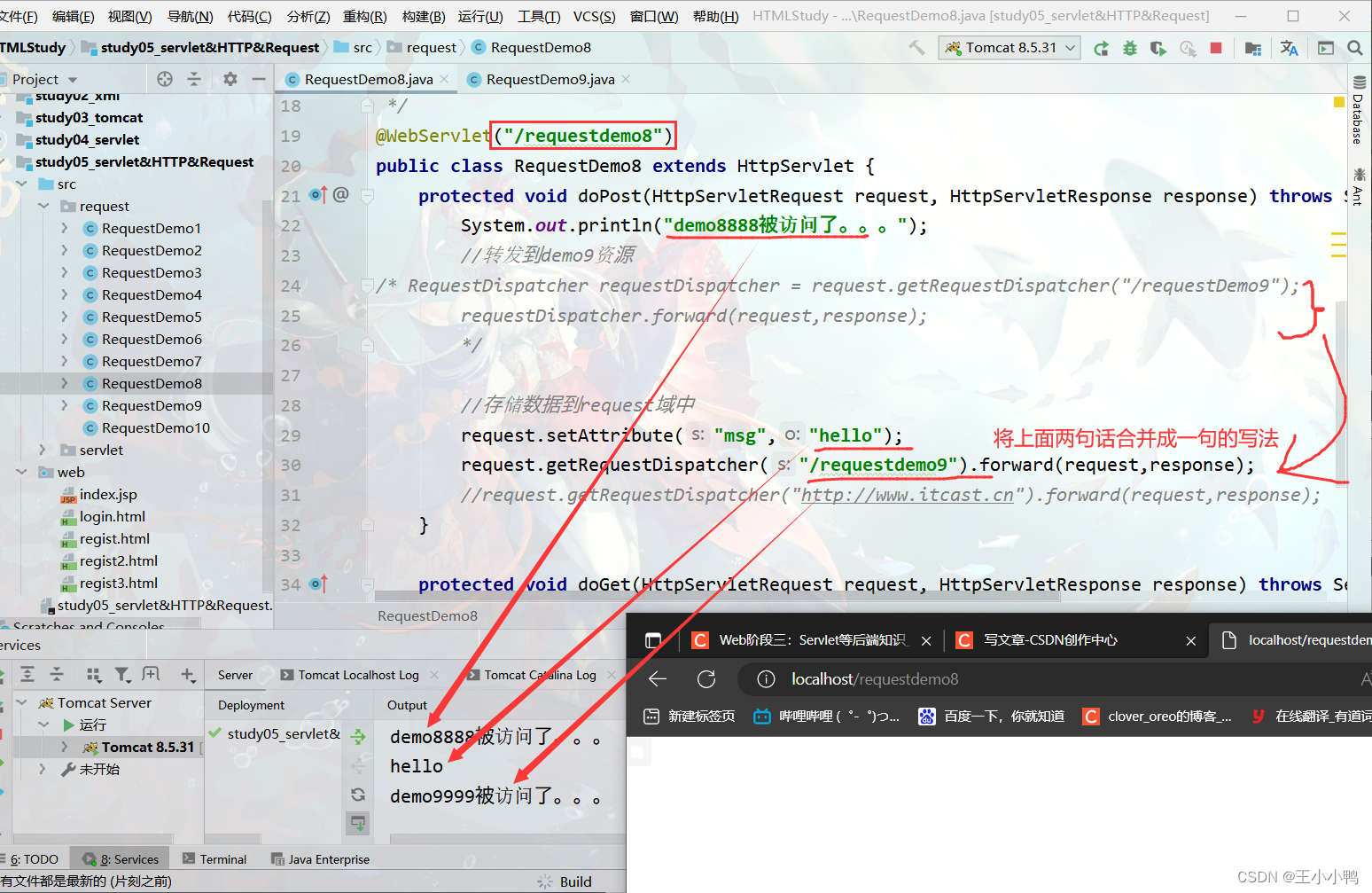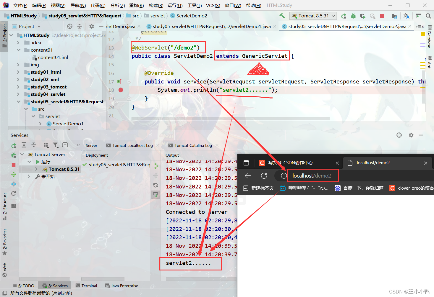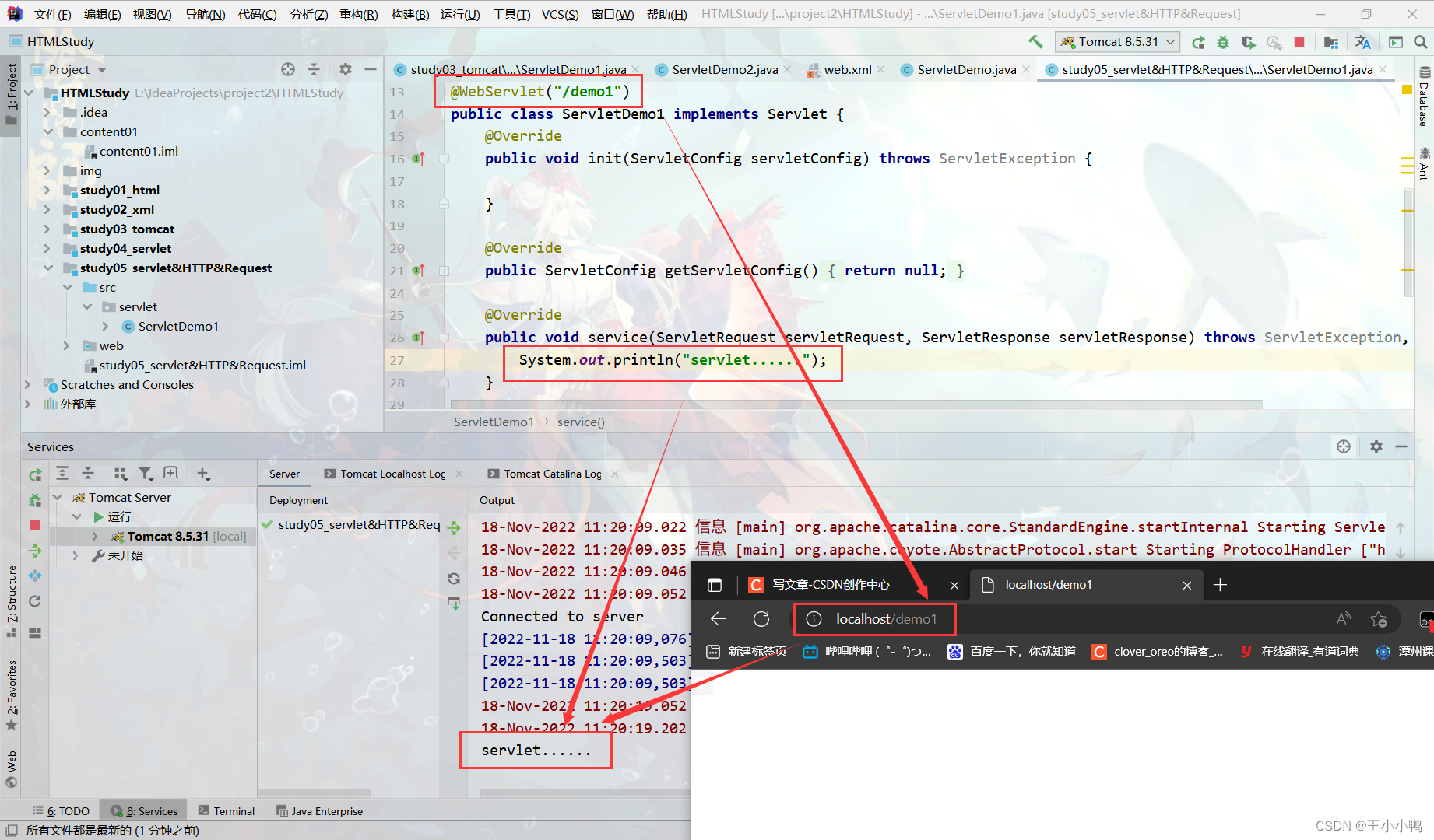 1. 一个Servlet可以定义多个访问路径 : @WebServlet({"/d4","/dd4","/ddd4"})