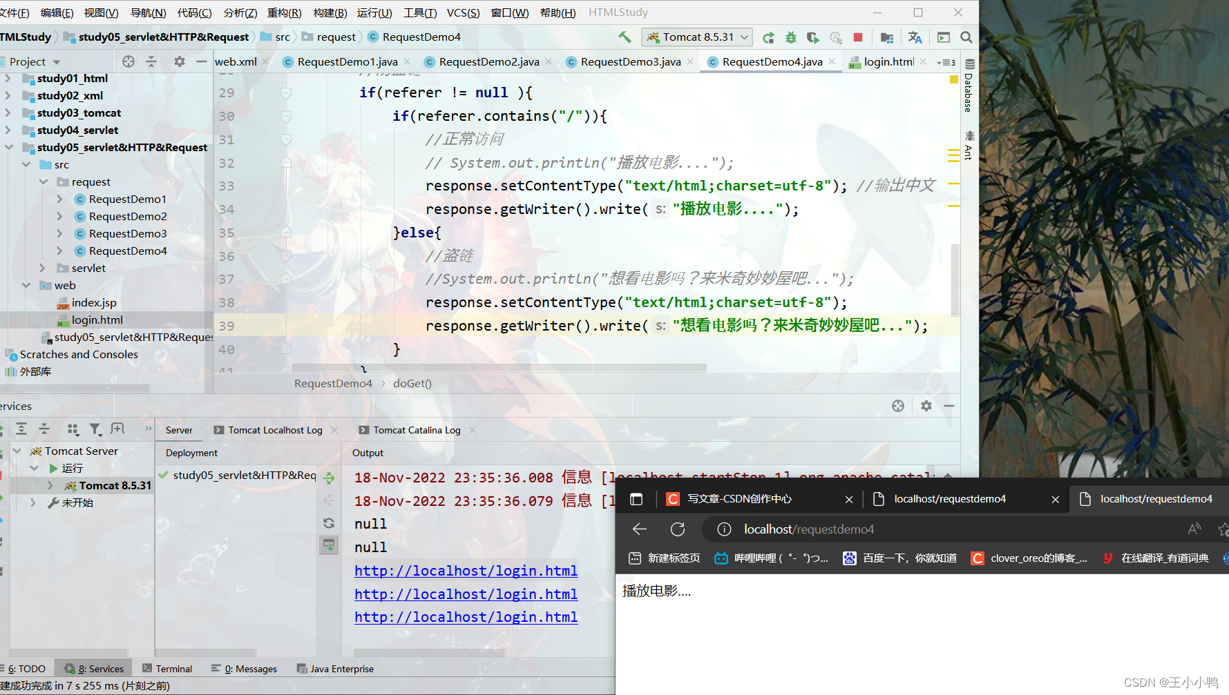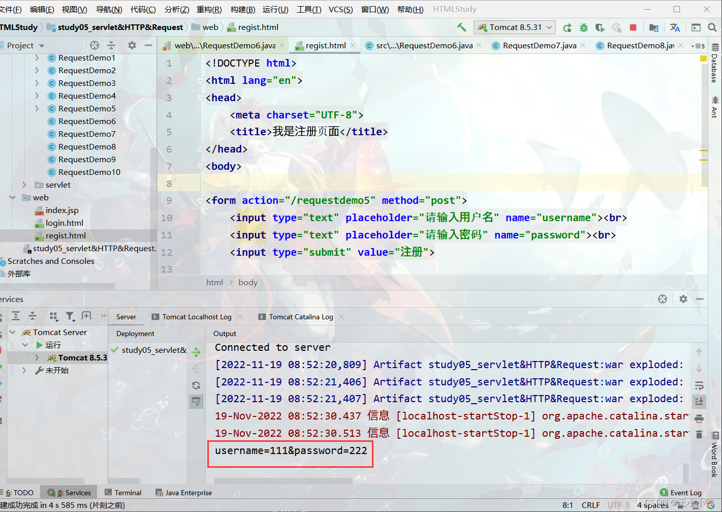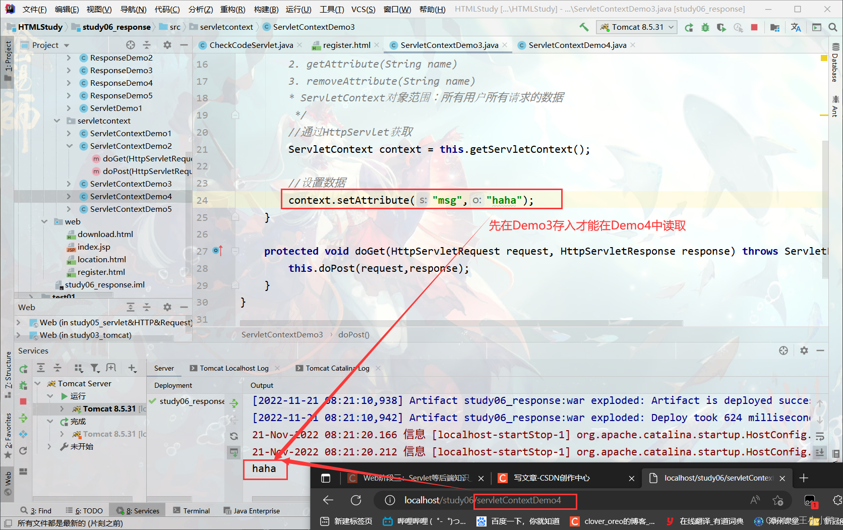 1. 一个Servlet可以定义多个访问路径 : @WebServlet({"/d4","/dd4","/ddd4"})