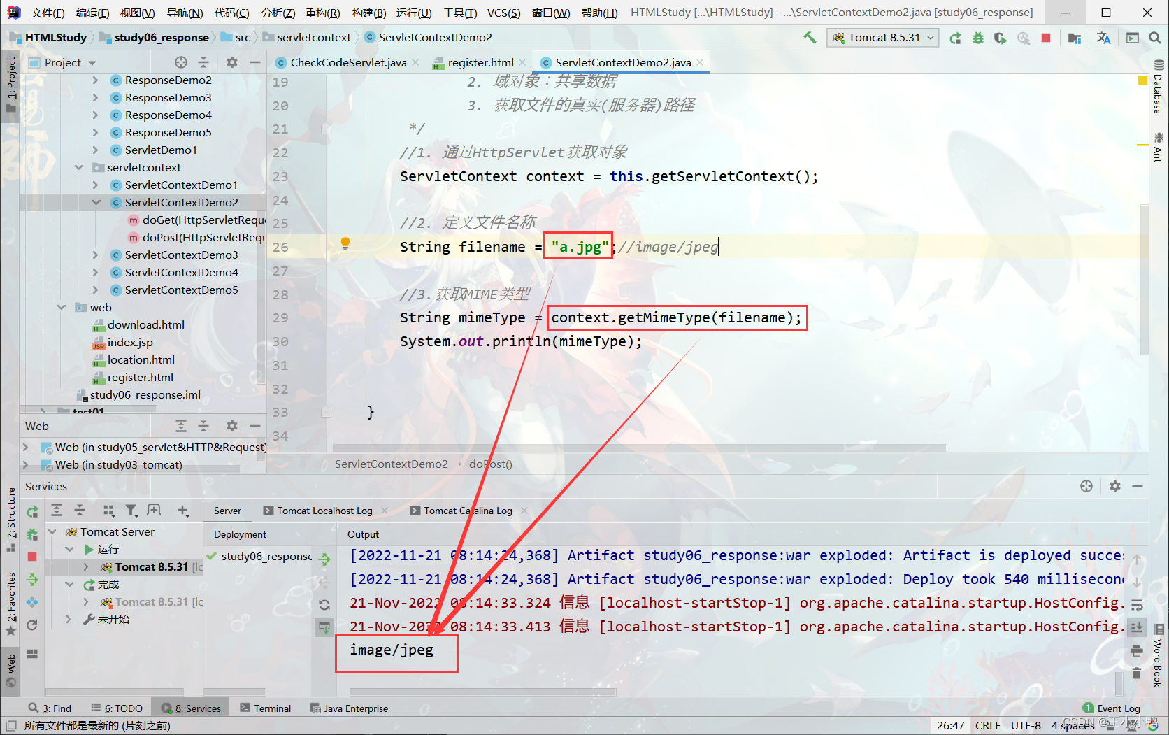 String mimeType = servletContext.getMimeType(filename);//获取文件的mime类型