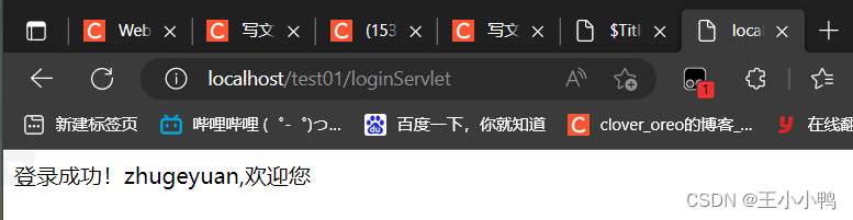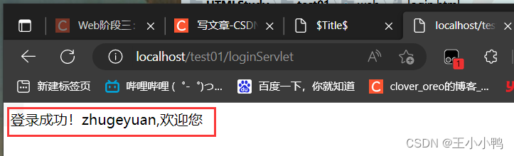 4.登录成功跳转到SuccessServlet展示:登录成功!用户名,欢迎您