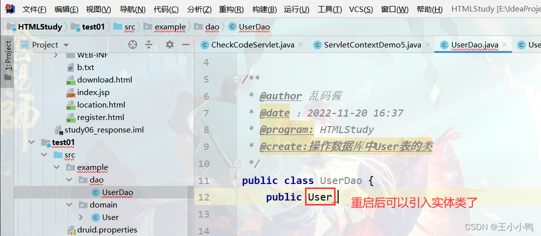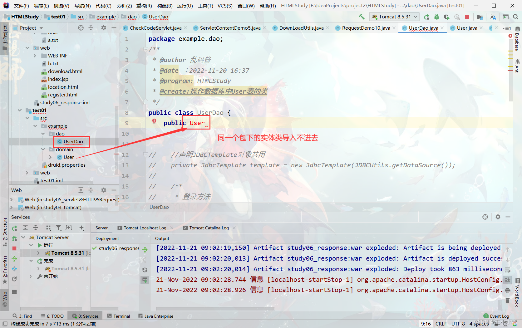 出现问题:同一个包内domain层的实体类导入不进去dao
