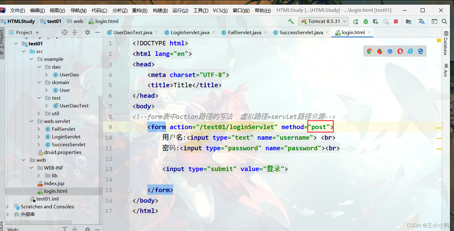 <!--form表中action路径的写法 虚拟路径+servlet路径资源-->