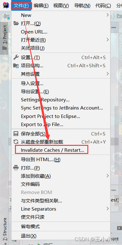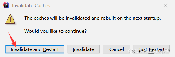 第二步:在弹出框中选择Invalidate and Restart。idea关闭并且自动重启,重启后问题解决。