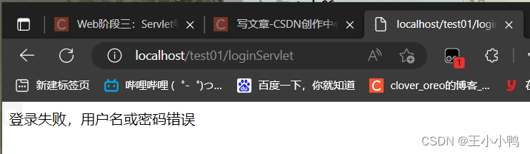 5.登录失败跳转到FailServlet展示:登录失败,用户名或密码错误