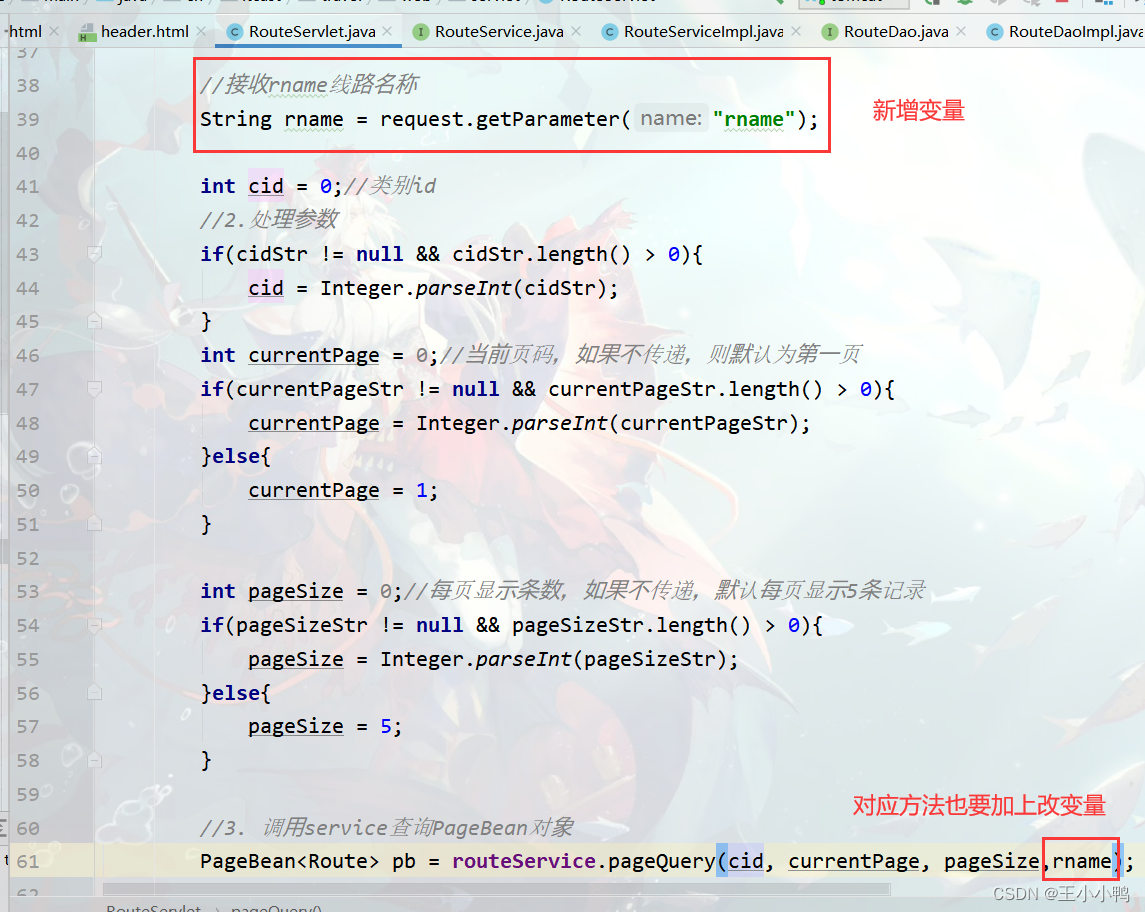 RouteDaoImpl中的findTotalCount()方法(根据cid查询总的记录数)和findByPage()方法(根据cid,start,pageSize查询当前的数据集合)都要加上