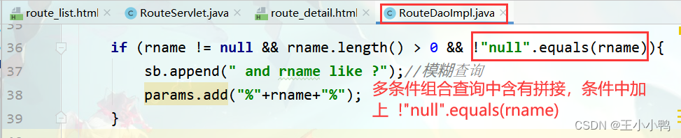 后面经小梅妹妹提醒才想起之前load方法只有cid、currentPage两个参数,后来多加了rname参数,多条件组合查询中含有拼接,条件中没有加 !"null".equals(rname) 自然会将null作为查询条件,结果自然为空,不怪乎此。