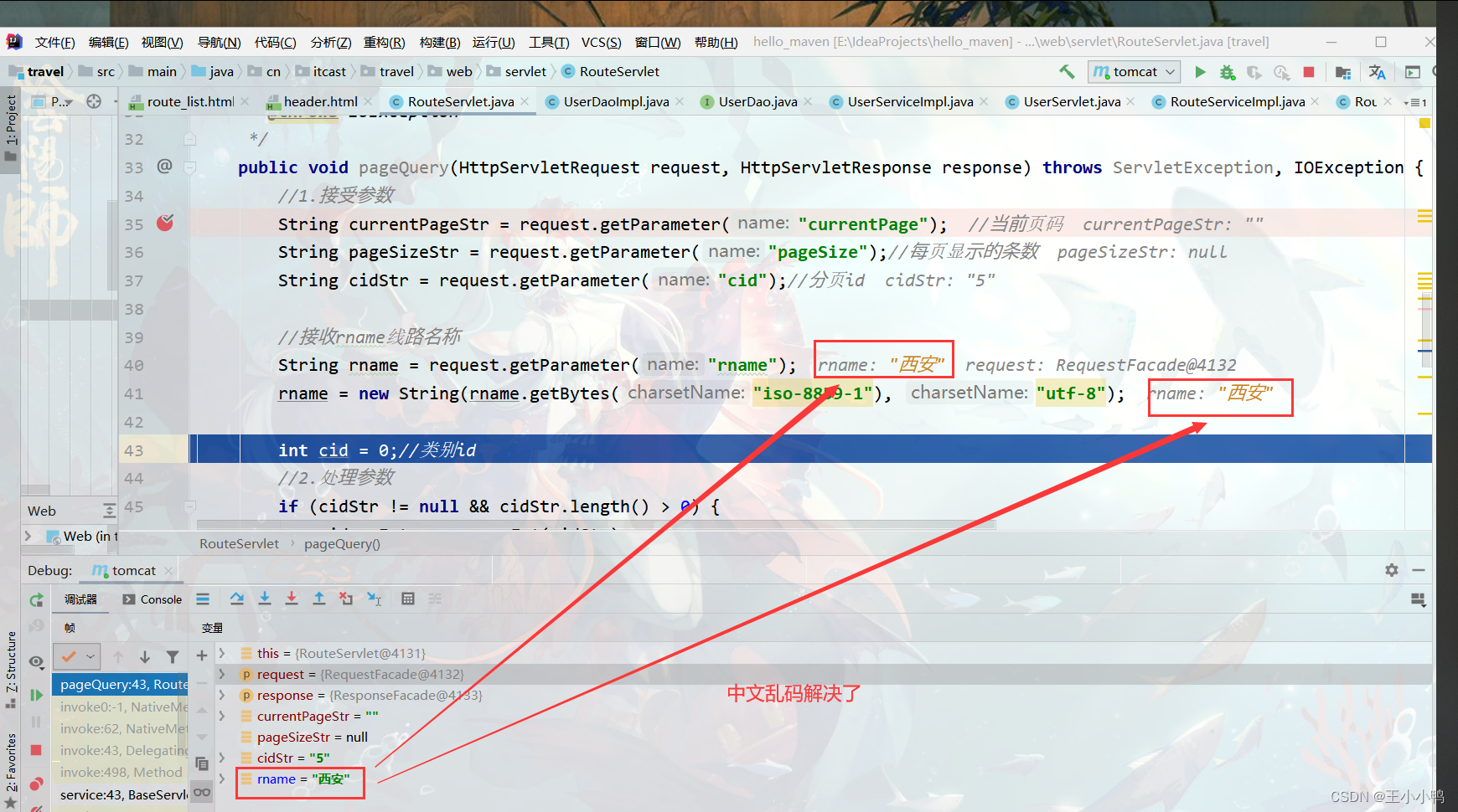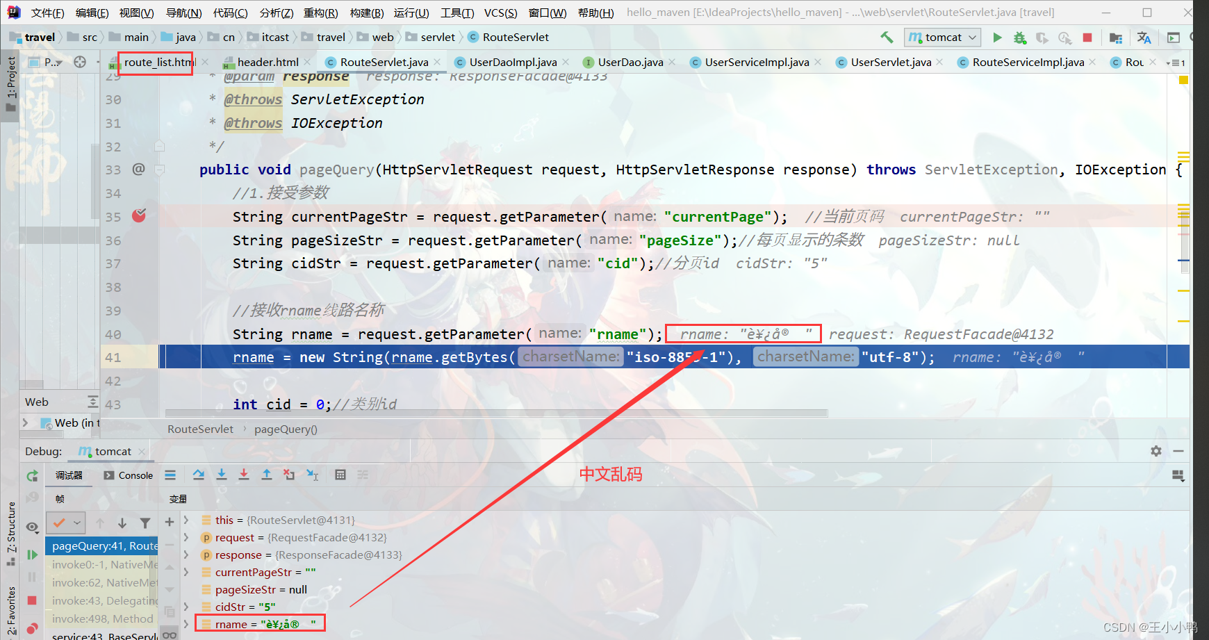 调试时出现问题,除了国内游第一页,其余界面皆不能正常显示,f12查看发现是route_list中load方法的rname参数为null,可是之前明明还好好地,怎会如此?