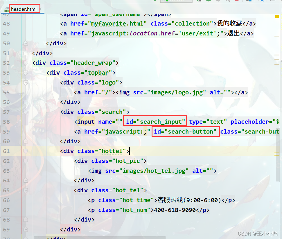 在header.html中有搜索框,在其中输入名称可以模糊查询线路,要实现先在搜索超链接中绑定id
