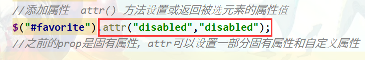 $("#favorite").attr("disabled",disabled); //添加属性 attr() 方法设置或返回被选元素的属性值