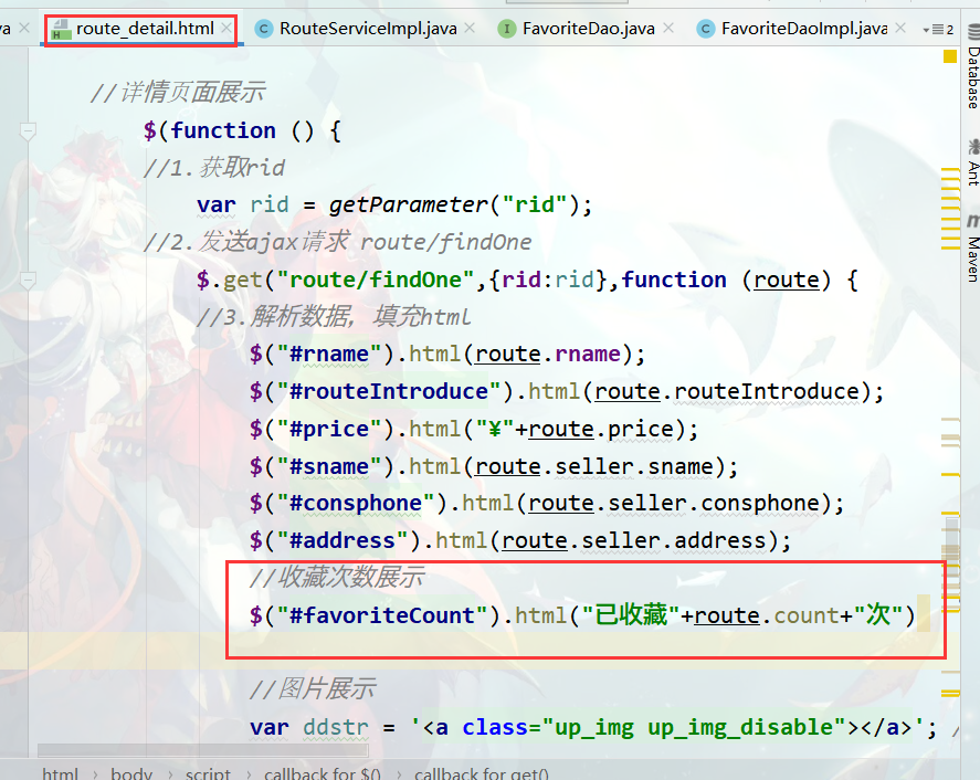 $("#favoriteCount").html("已收藏"+route.count+"次")