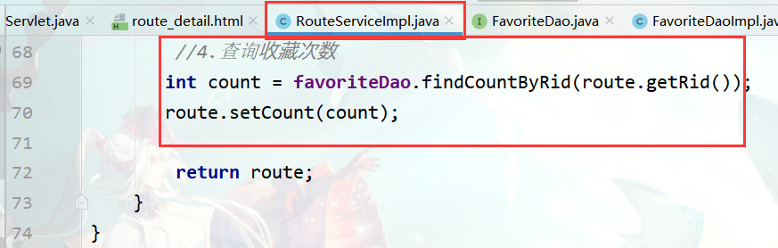 //4. 查询收藏次数int count = favoriteDao.findCountByRid(route.getRid());route.setCount(count);