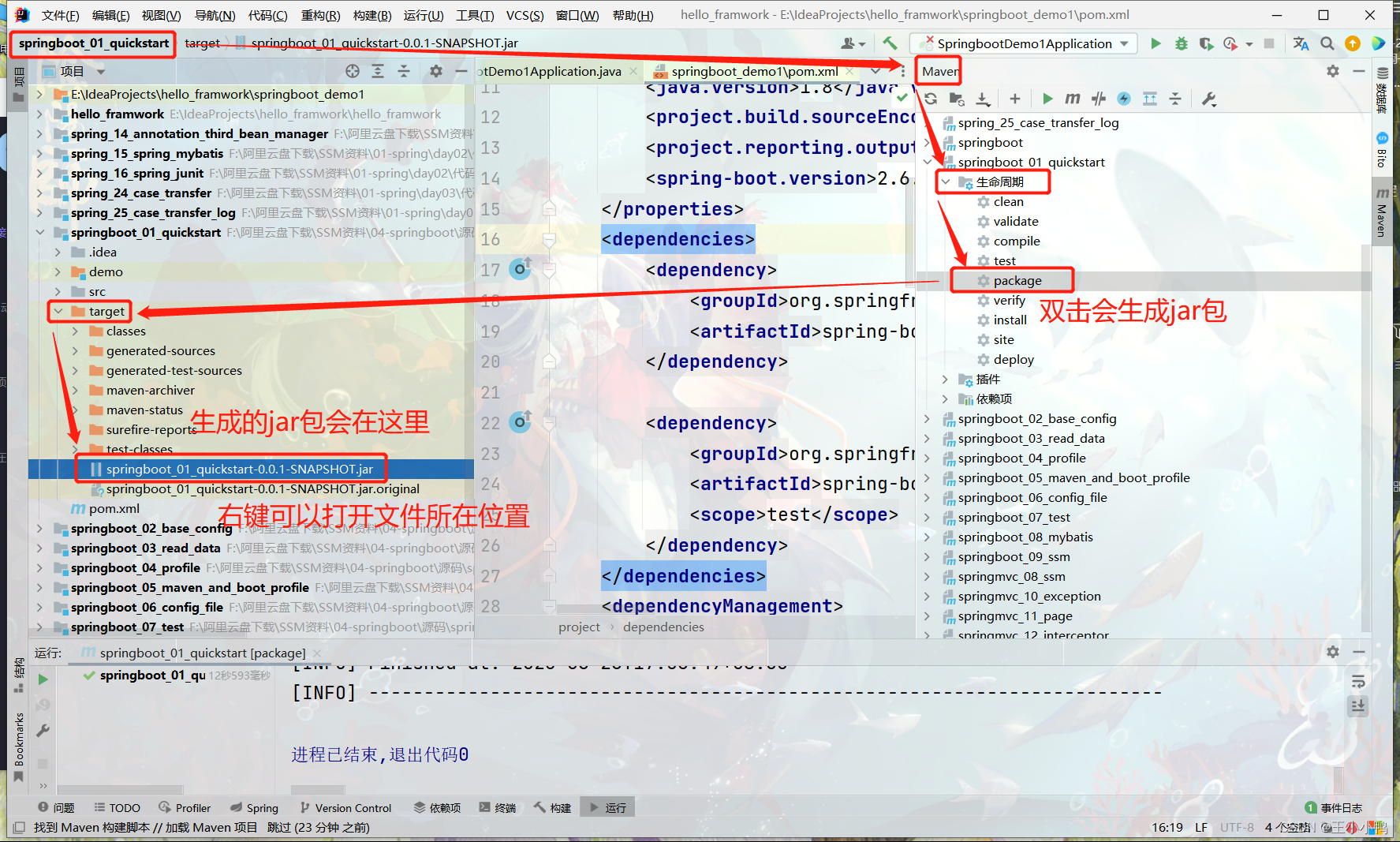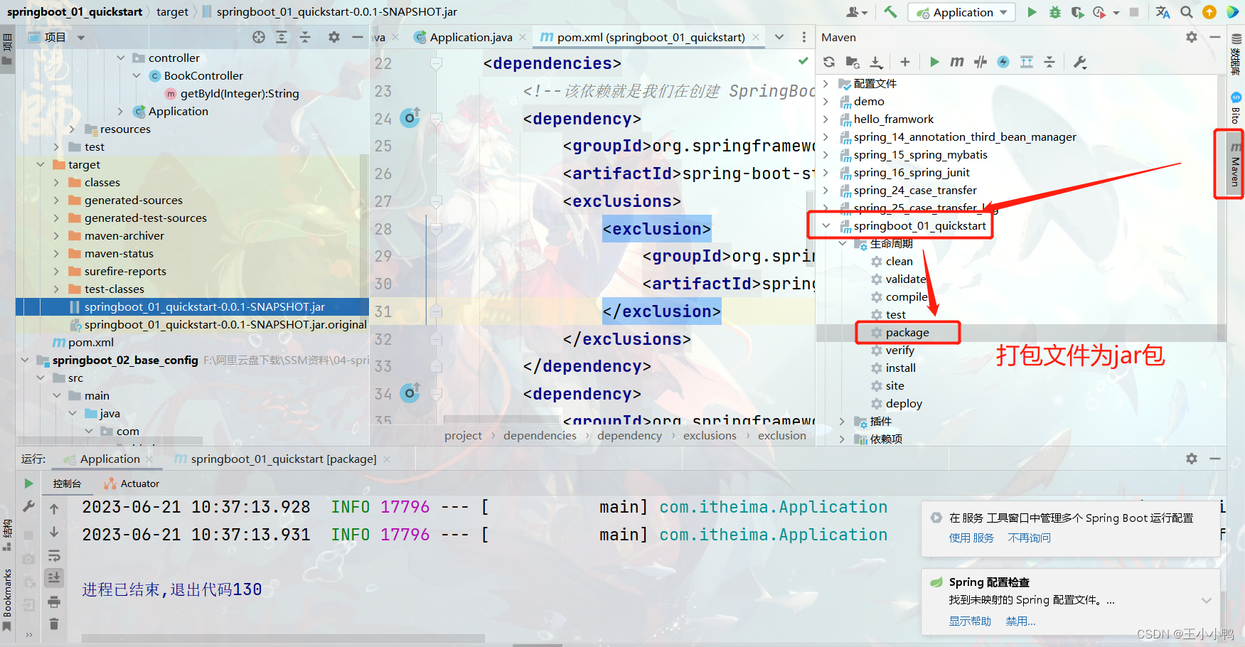 所以我们只需要使用 Maven 的 package 指令打包就会在 target 目录下生成对应的 Jar 包。