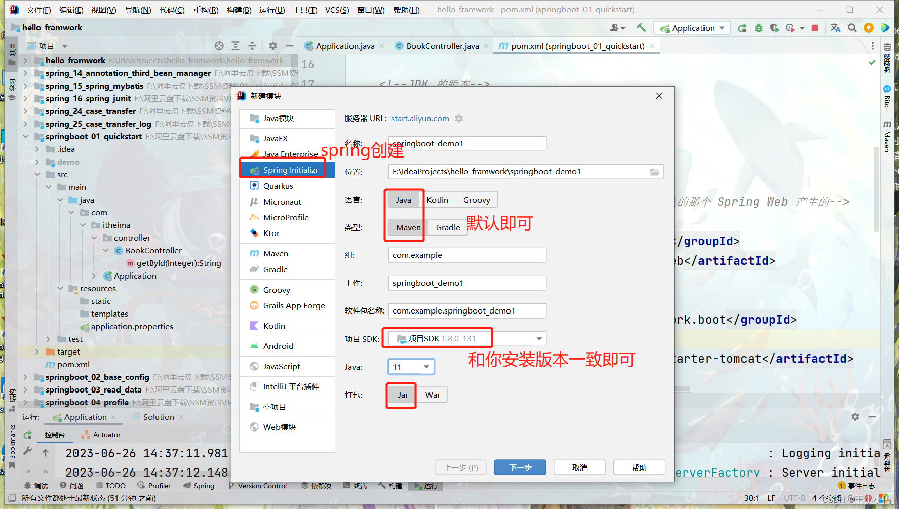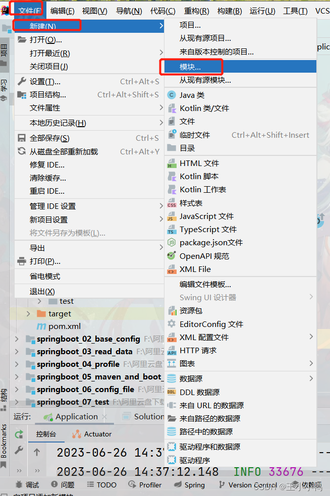 经过以上步骤后就创建了如下结构的模块,它会帮我们自动生成一个 Application 类,而该类一会再启动服务器时会用到