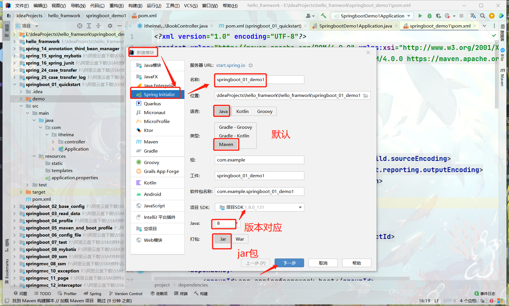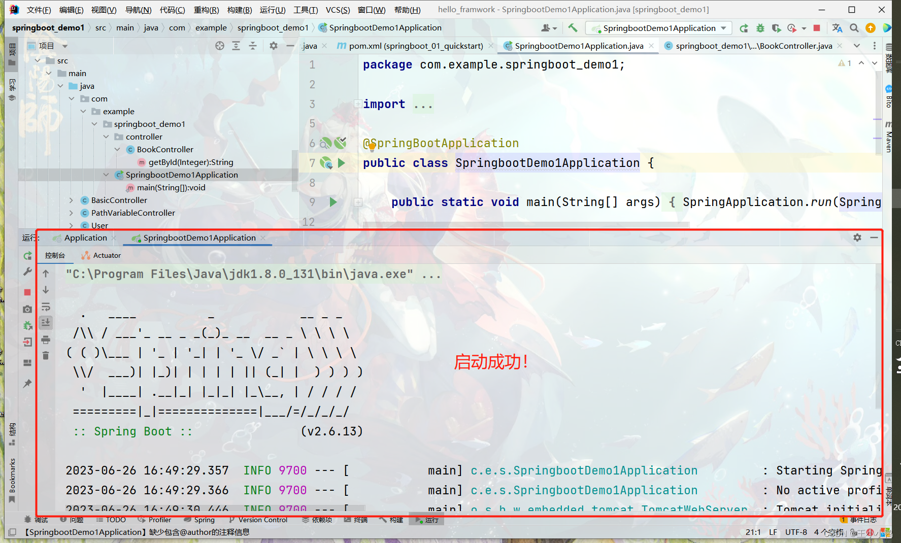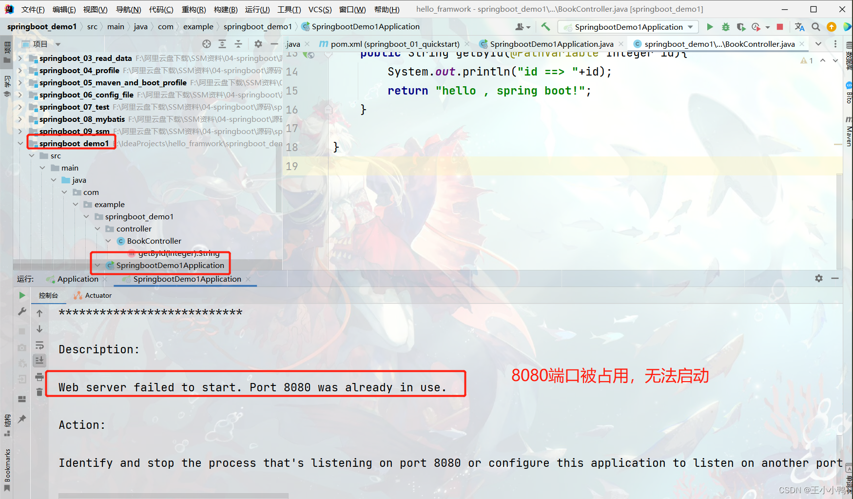 在 com/example/springboot_demo1包下创建 BookController ,代码如下: