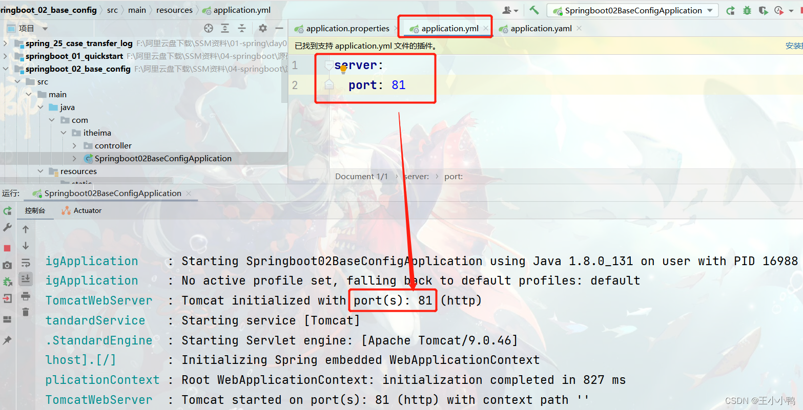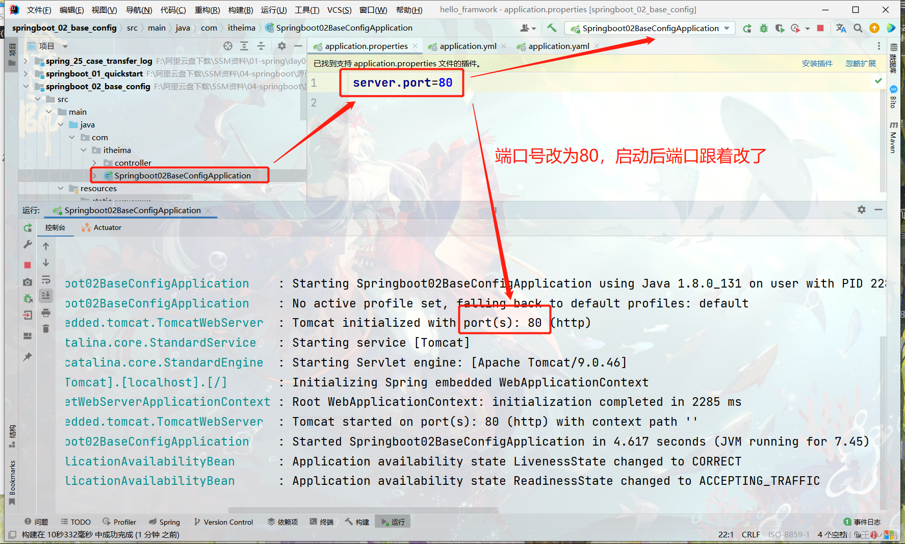 而在 yml 配置文件中也是有提示功能的,我们也可以在该文件中书写 port ,然后 idea 就会提示并书写成上面的格式