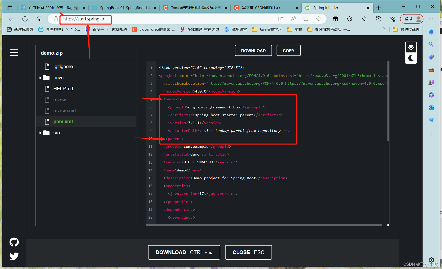 区别:服务器url不同,阿里云模板没有指定父类工程<parent></parent>