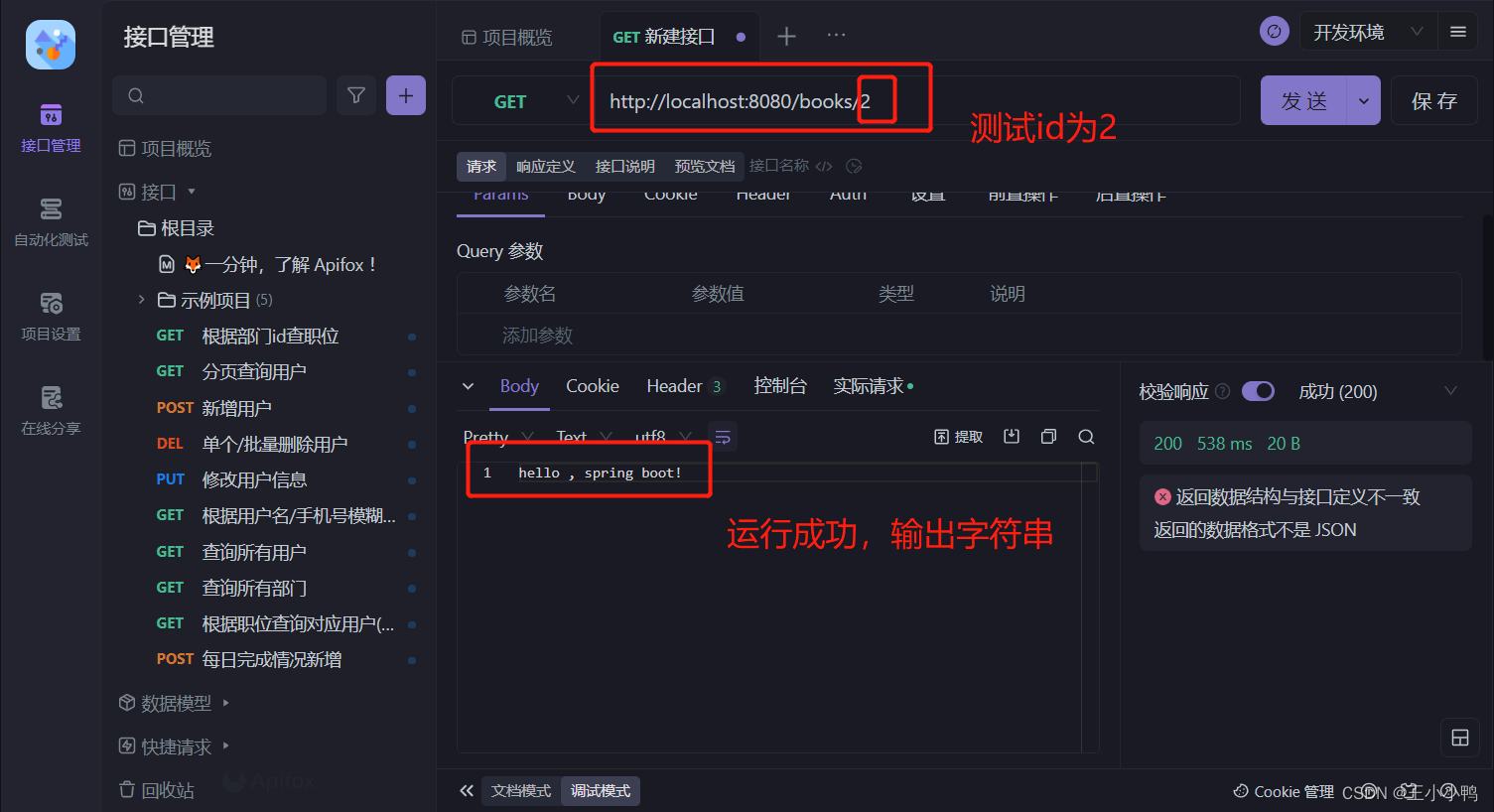 重新在cmd命令窗口运行,启动成功,在Apifox上运行测试