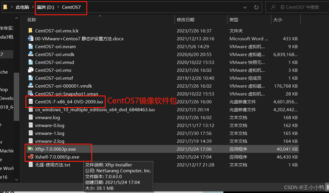 XShell和XFTP文件压缩包所在路径 D:\CentOS7