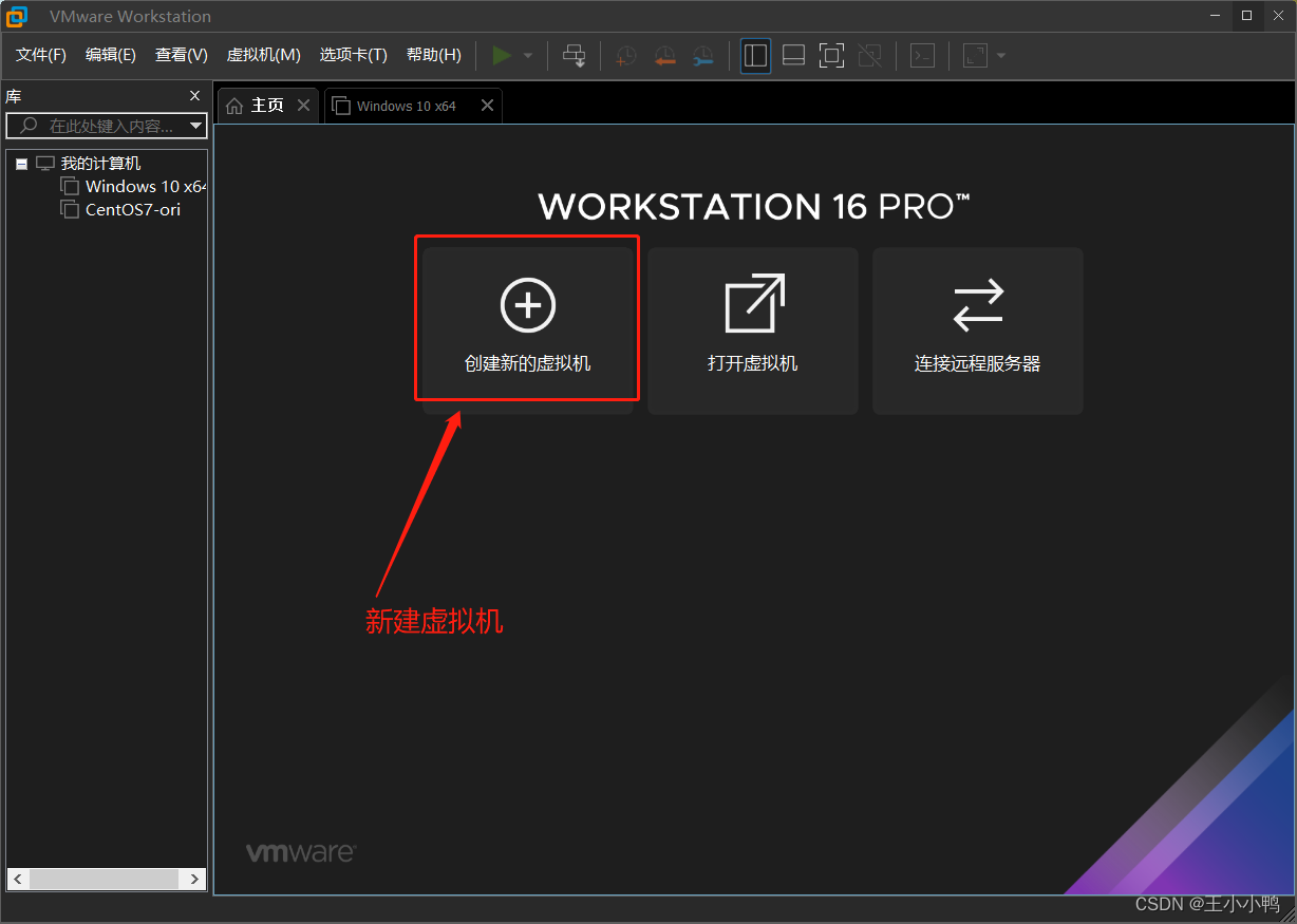 打开VMware虚拟机,点击“创建新的虚拟机”