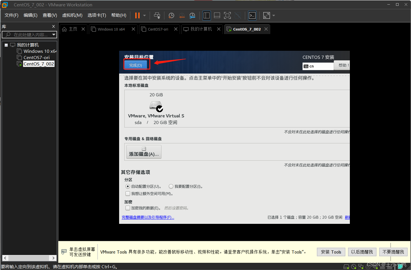 选择安装位置 D:\Virtual Machines\CentOS 7 64 位