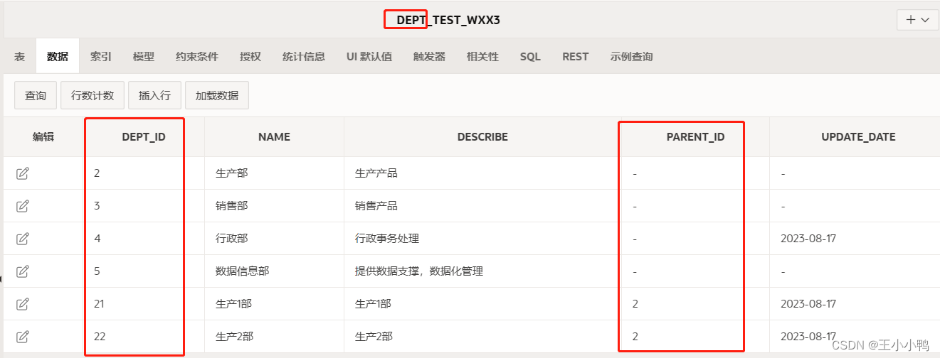 先创建中间表,使用户、部门、角色、权限四个主表之间建立联系