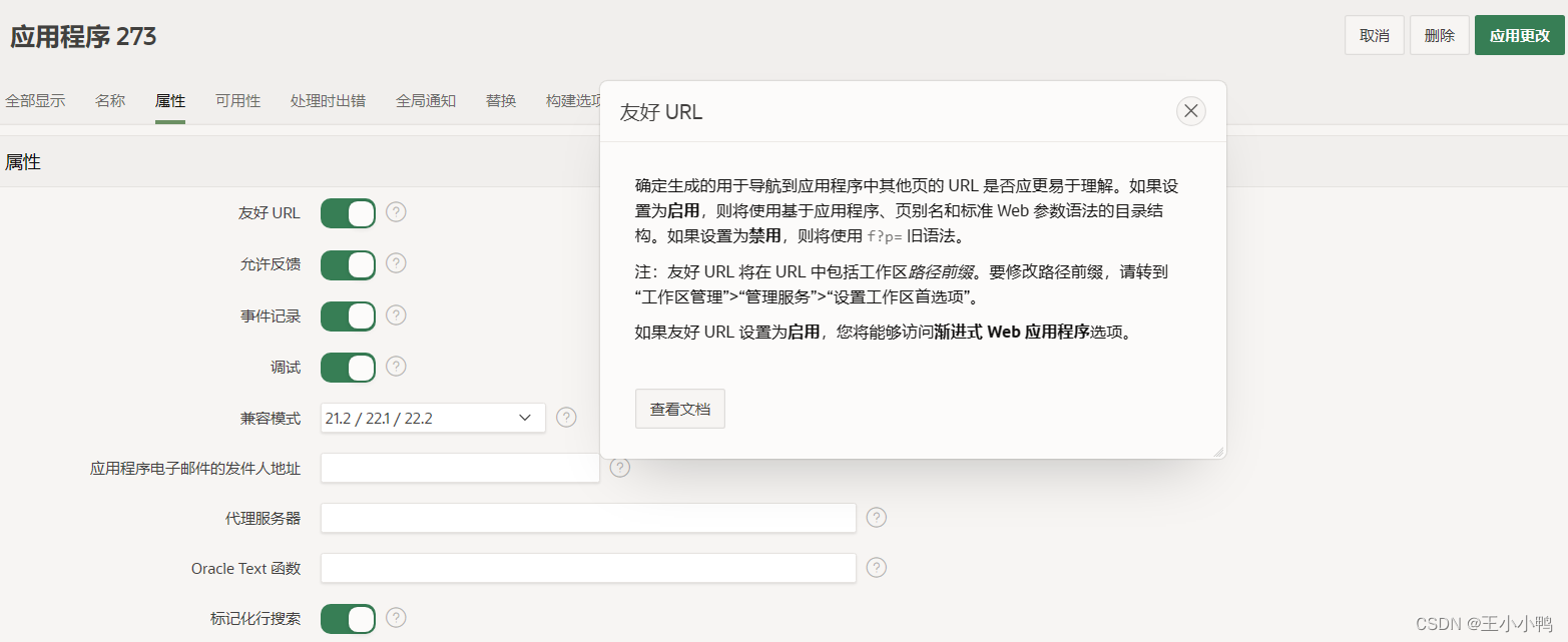 确定生成的用于导航到应用程序中其他页的 URL 是否应更易于理解。如果设置为启用,则将使用基于应用程序、页别名和标准 Web 参数语法的目录结构。如果设置为禁用,则将使用 f?p= 旧语法。
