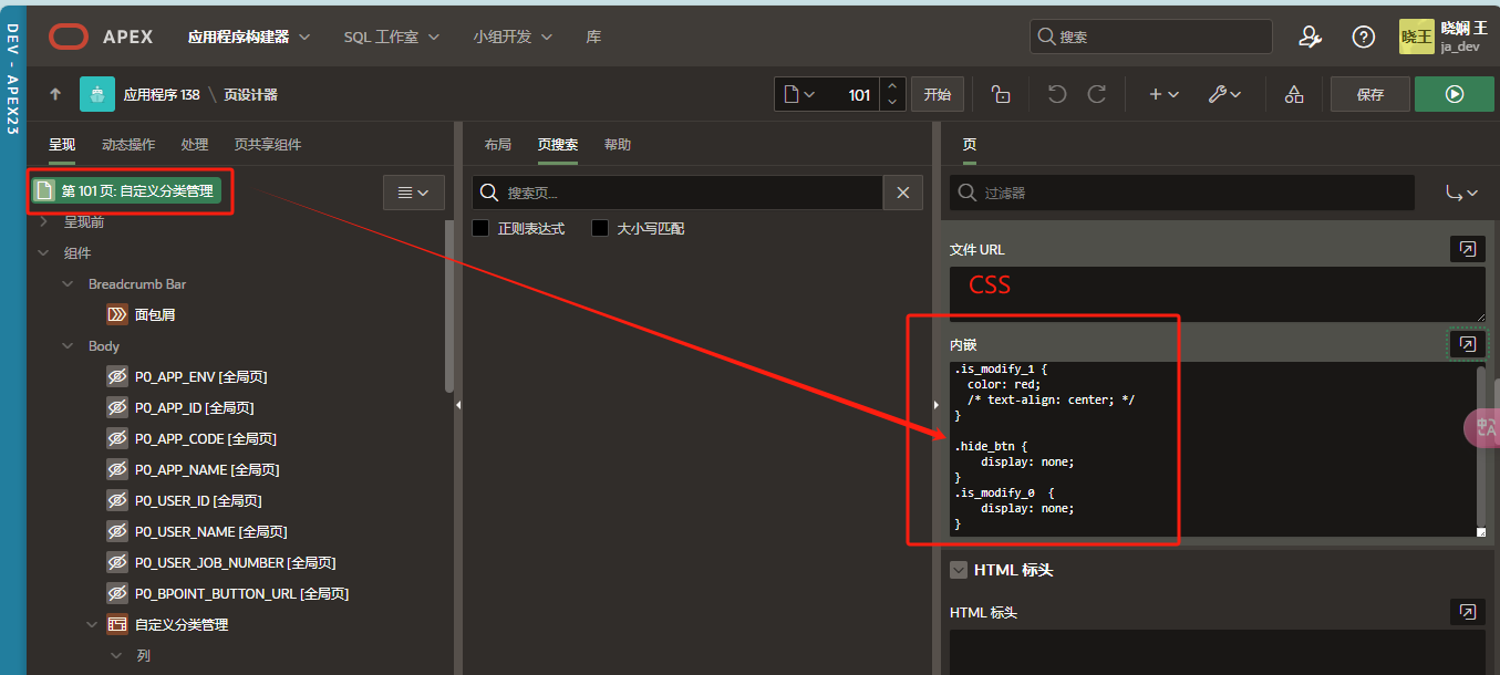 在页→CSS 内嵌 进行样式和显示/隐藏的设置