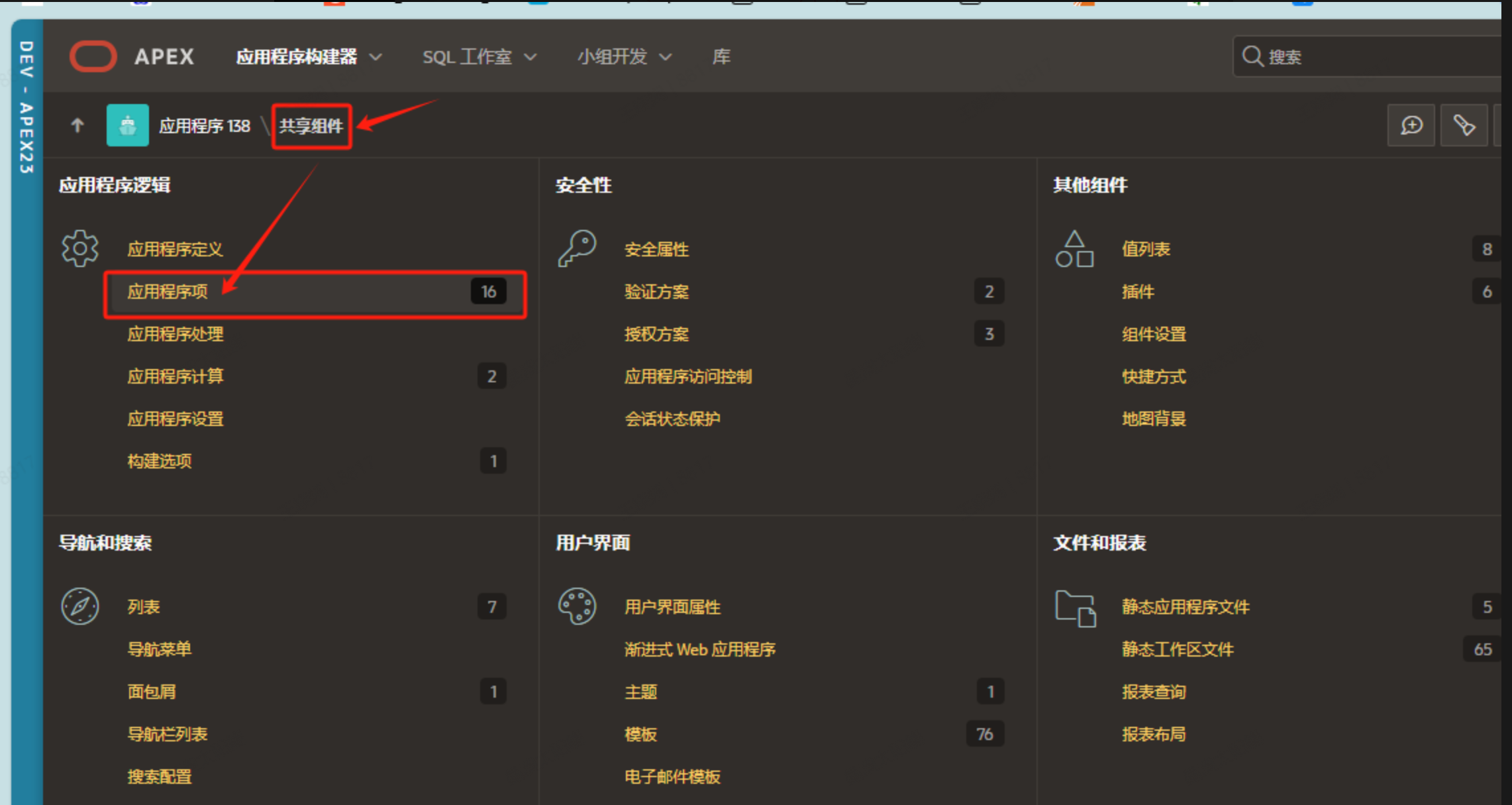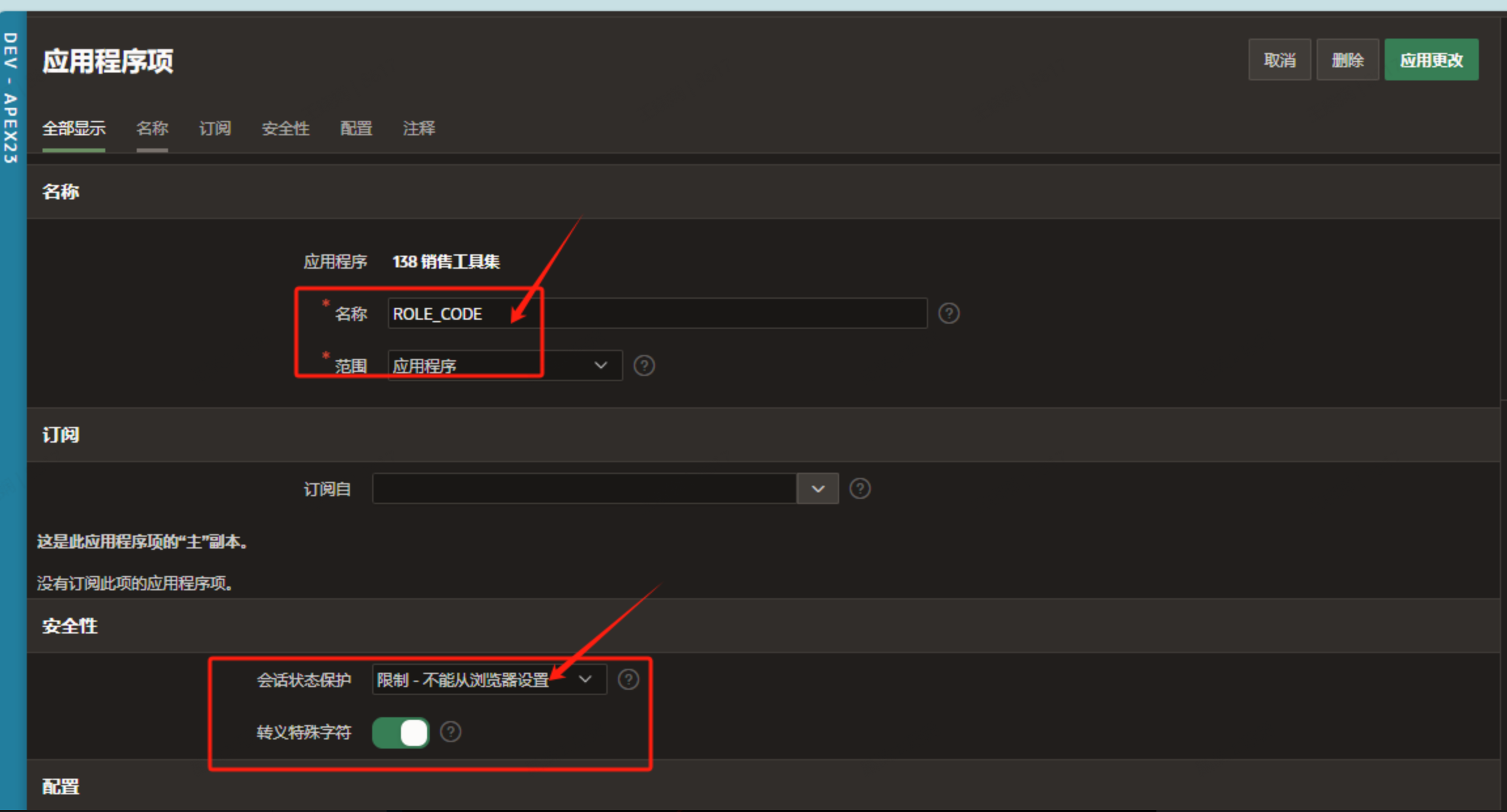 在APEX应用→共享组件→应用程序项→创建新项ROLE_CODE