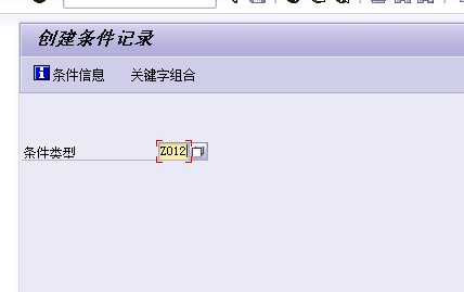 当条件类型维护完成后,就可以在前台维护条件记录,本例是MM模块采购价格的示例,使用的事物码是MEK1,进入后如图 6所示,输入前述创建的“Z012”条目,按回车键或点击“关键字组合”按钮,弹出对话框如图 7所示,可以看到有三个选择项,这些其实是条件顺序设定的条件表的名称,选择第二项“采购组织/供应商/物料”。