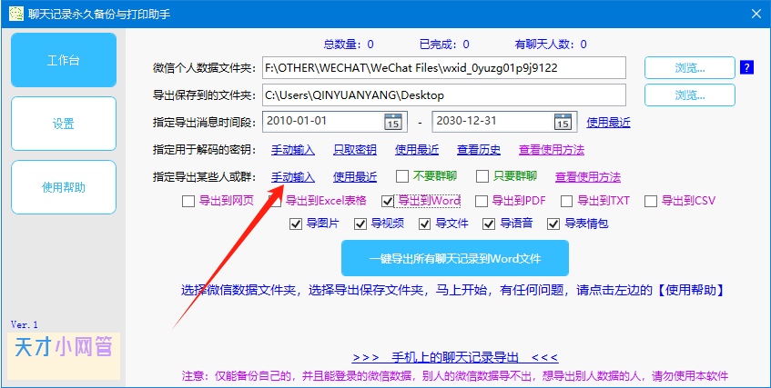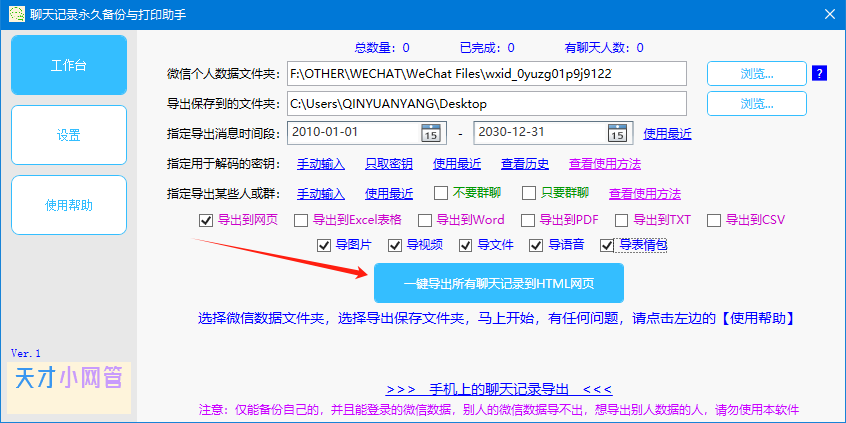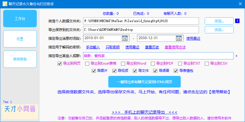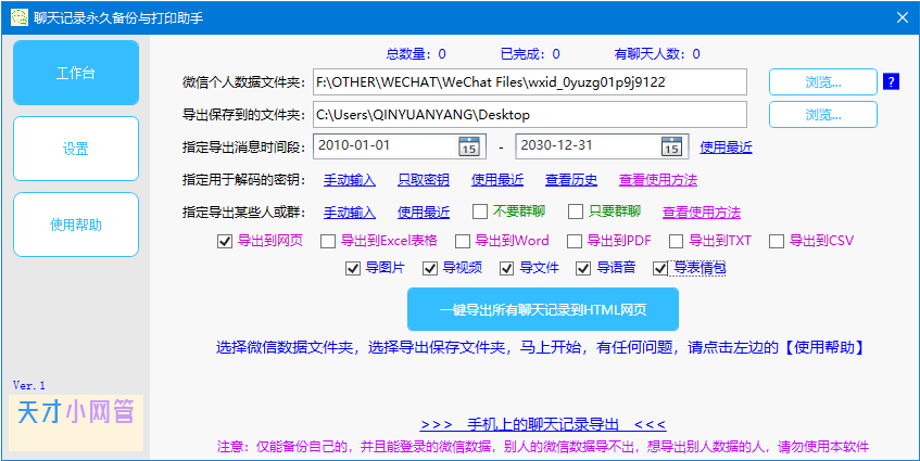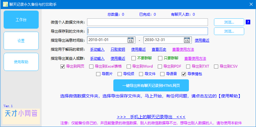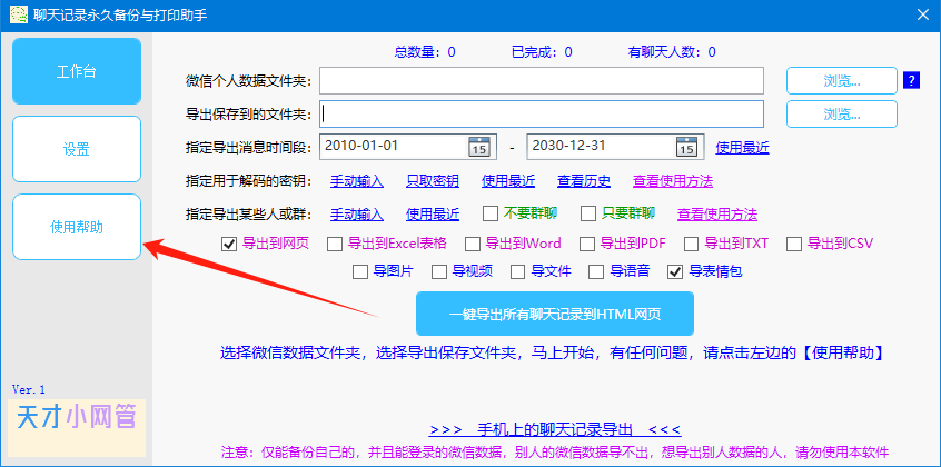 聊天记录永久备份与打印助手 - 天才小网管软件文档