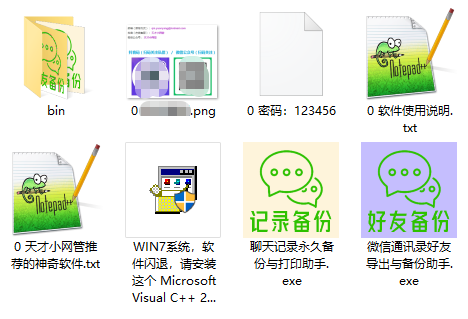 7,重启微信后,继续导出工作,本文章开头有导出软件的获取链接,把软件保存到电脑中,然后对软件的压缩包完整地解压出来,得到下面的程序文件