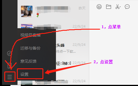 使用和手机一样的WIFI,登录电脑微信,然后在手机微信中,点【我】-【设置】