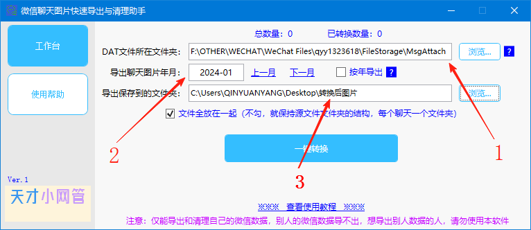 本教程主要是把微信的聊天图片保存在数据文件夹中的加密DAT文件转换成普通的图片文件,微信聊天窗口收到图片后,如果不点开来看,微信是不会把图片同步到电脑中保存的,所以要批量保存的图片,最好都点一下,让它在电脑屏幕上显示一下,以保证电脑中有相关的图片数据。