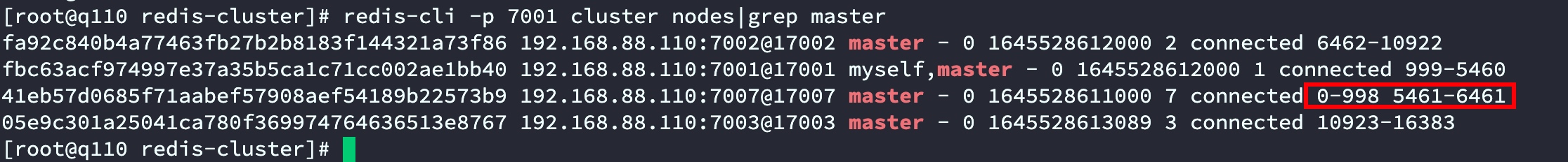 redis-cli -p 7001 cluster nodes|grep master