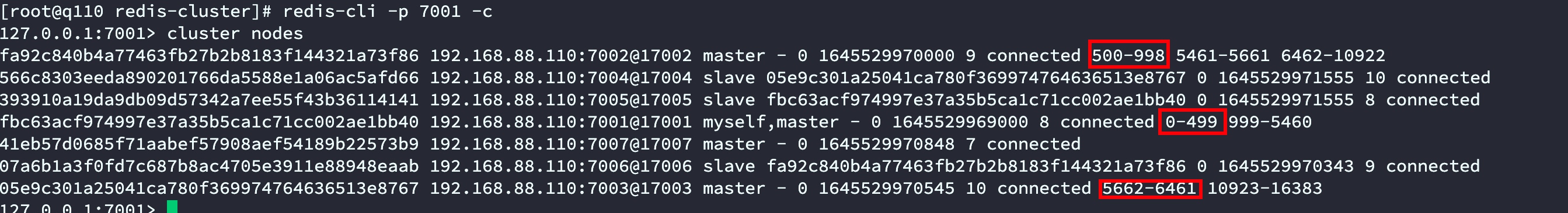 redis-cli -p 7001 -ccluster nodes