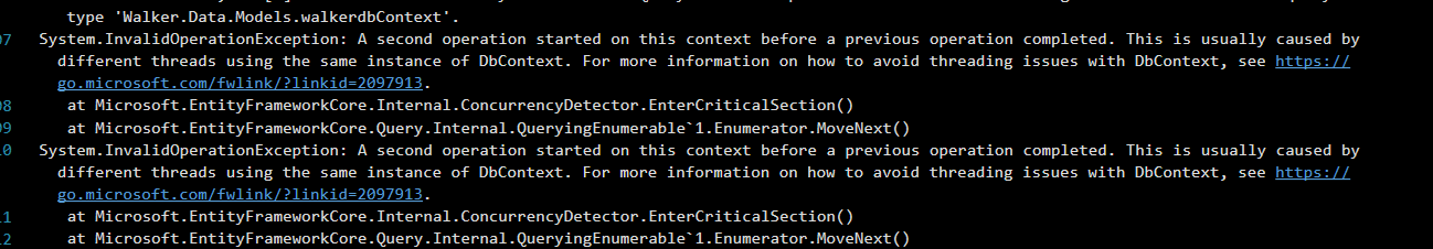 System.InvalidOperationException: An attempt was made to use the context while it is being configured. A DbContext instance cannot be used inside OnConfiguring since it is still being configured at this point. This can happen if a second operation is started on this context before a previous operation completed. Any instance members are not guaranteed to be thread safe.