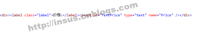 <div><label class="label">价格:</label><input id="TextPrice" type="text" name="Price" /></div>